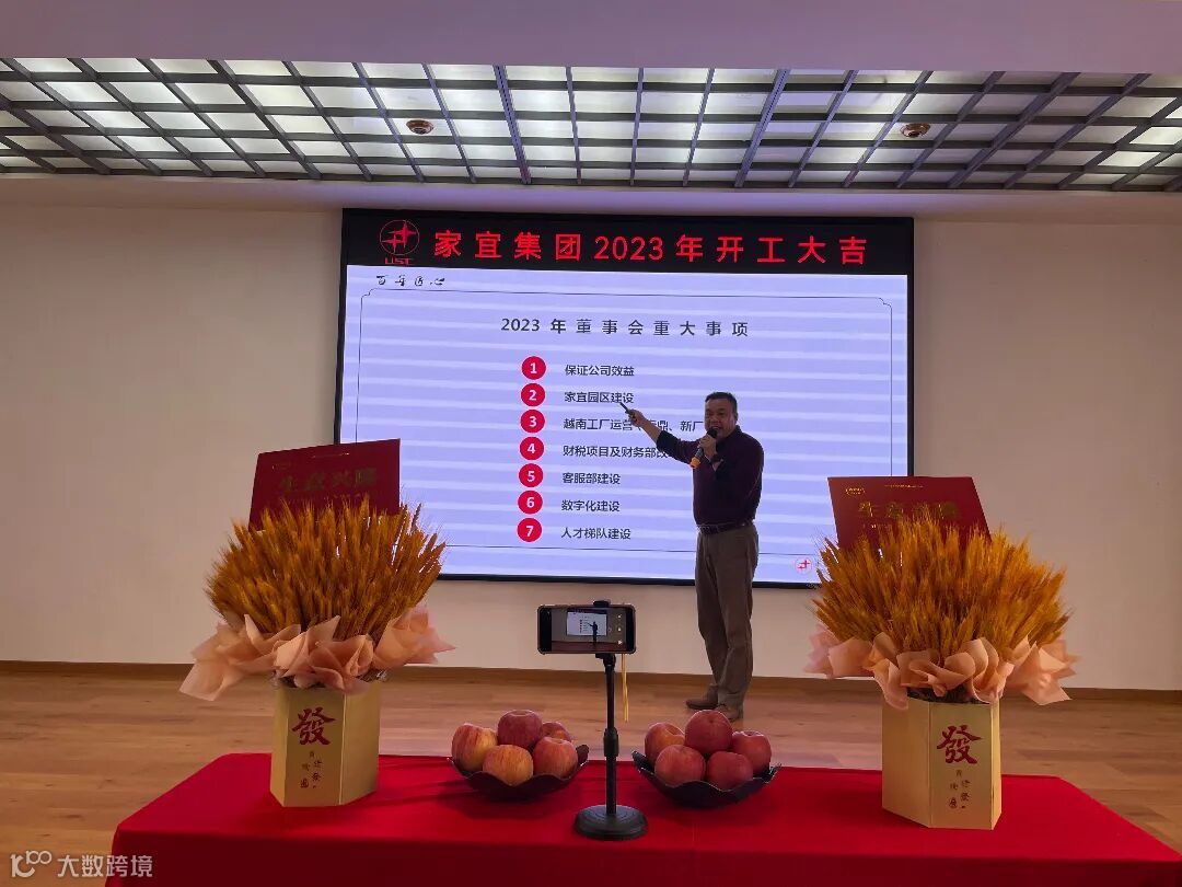 2月7日下午,开工第一天,家宜集团召开了“2023年开工大会”,总部及各工厂主管级(含)以上人员共同参加会议,预示着我们2023年各项工作蓄势待发、全面开启!