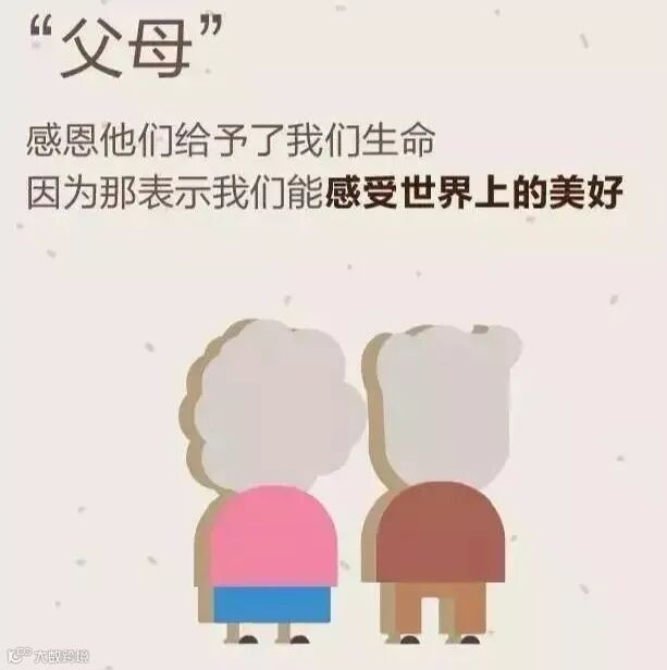 感恩父母。感谢你们给予我们生命,养育我们成人,愿您们健康快乐,安享晚年!
