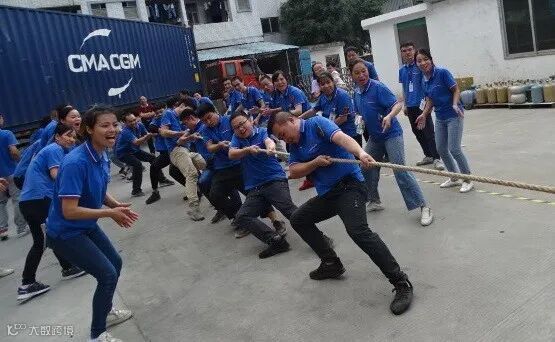 当裁判员发出“预备”口令,参赛队员们个个紧握长绳,斗志昂扬,卯足了劲,齐心协力往后拉,未参赛的员工自发组成啦啦队,激动而热烈地为场上队员们加油助威,呐喊声此起彼伏......