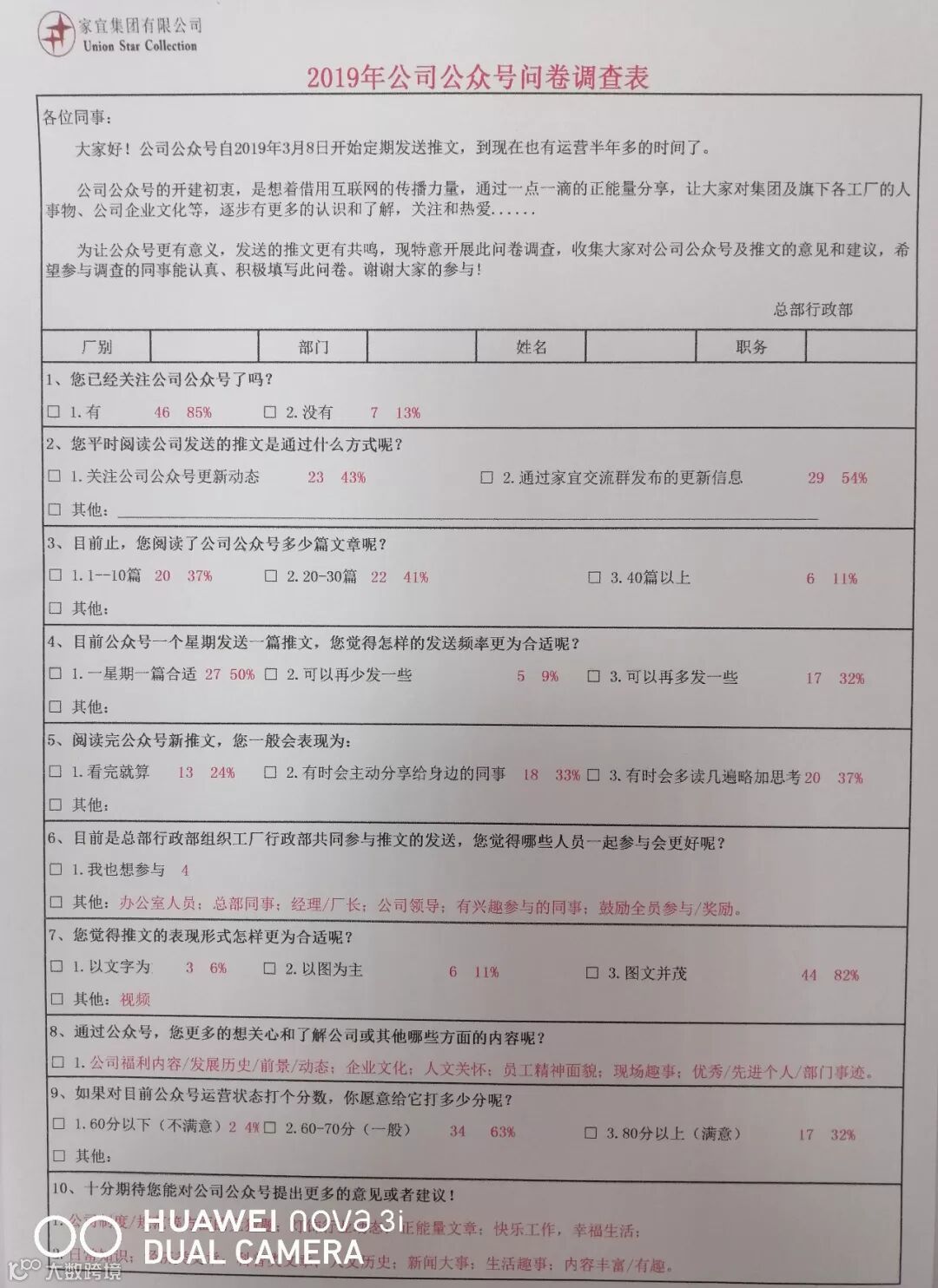 2019年10月,公司对运营半年多的公众号进行了状态汇总,并开展了问卷调查(分析现状,征集意见).....