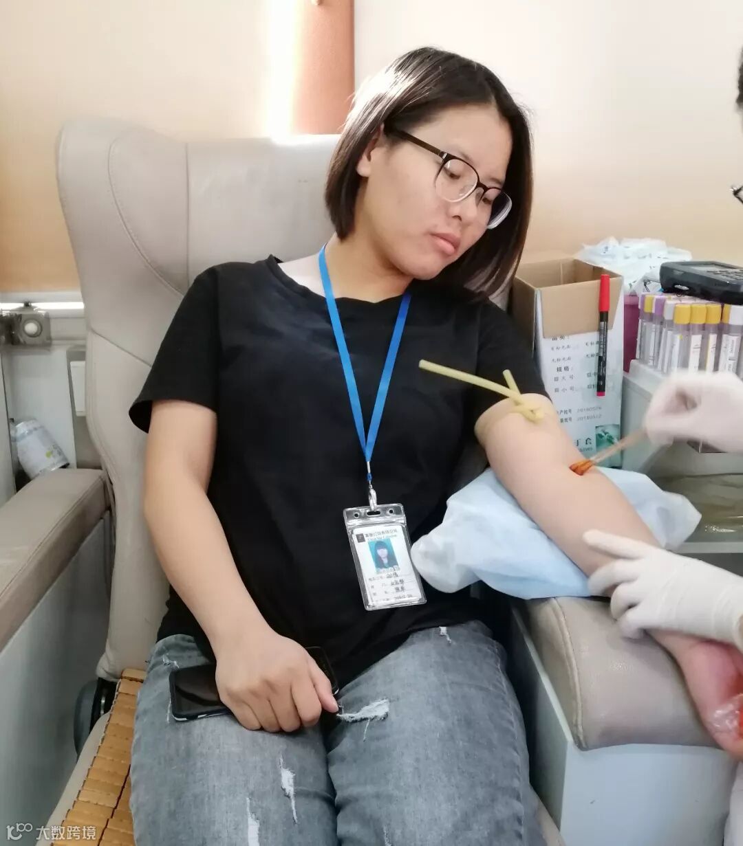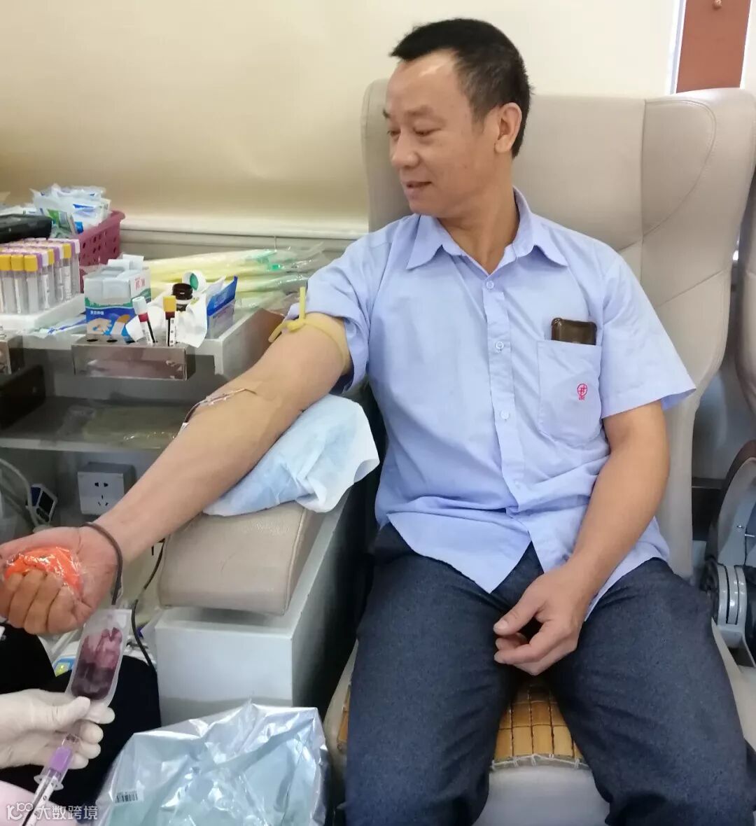 家宜可有好几个同事,连续两三年都参加了献血活动。他们认真有序地进行着“填表、验血、量血压、称重、献血”等系列环节,每个人的脸上都洋溢着淡定而温暖的笑容。