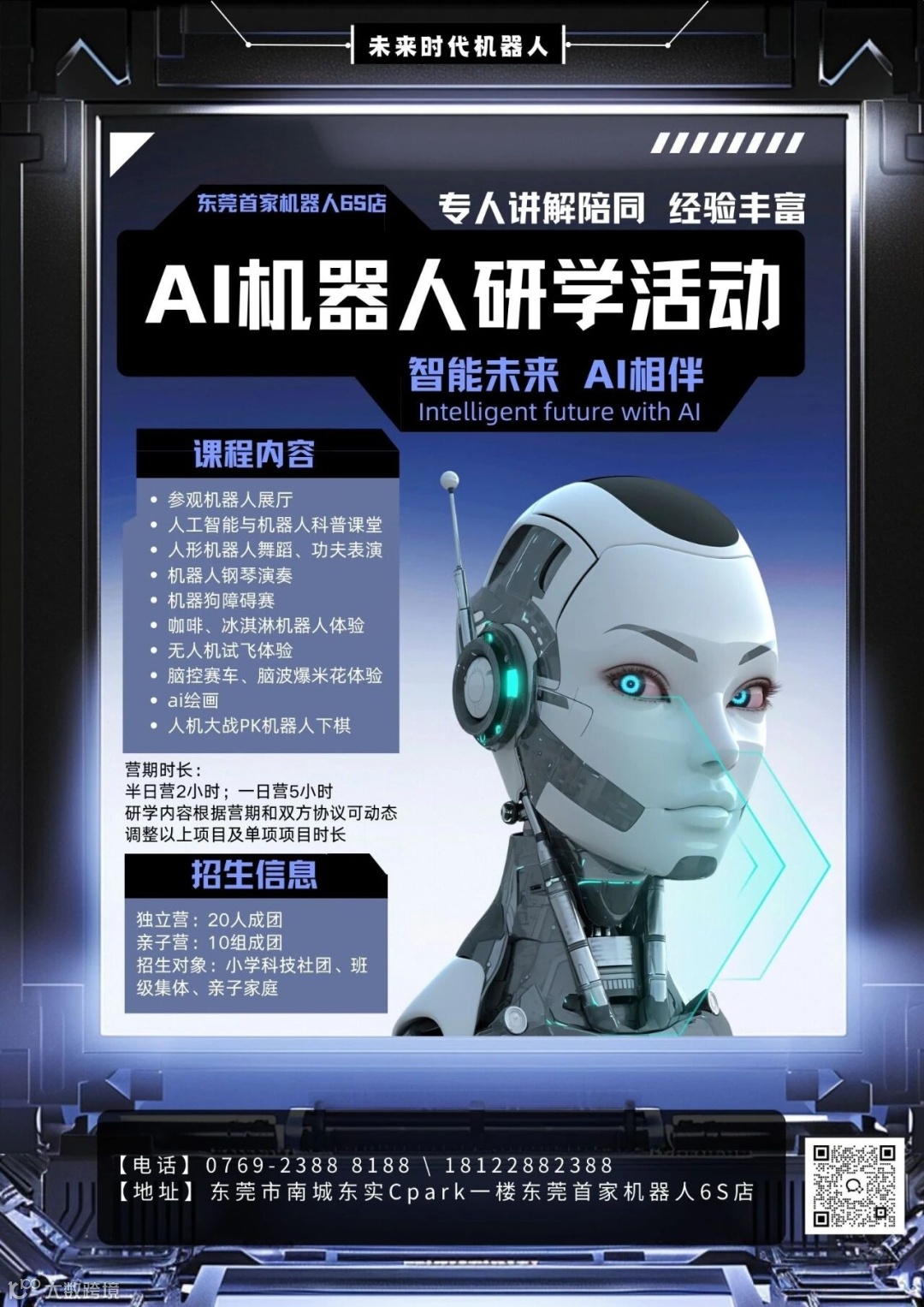 最近,这家机器人“6S”体验店还面向学生社团、亲子家庭等推出AI机器人研学活动,本周正式开始招募学员!包含人工智能与机器人科普课堂、机器人表演(钢琴、舞蹈、功夫)、机器狗障碍赛、咖啡及冰淇淋机器人体验、AI绘画等丰富活动,全程专人讲解陪同,半日营、一日营可选,20人即可成团,欢迎报名参与!