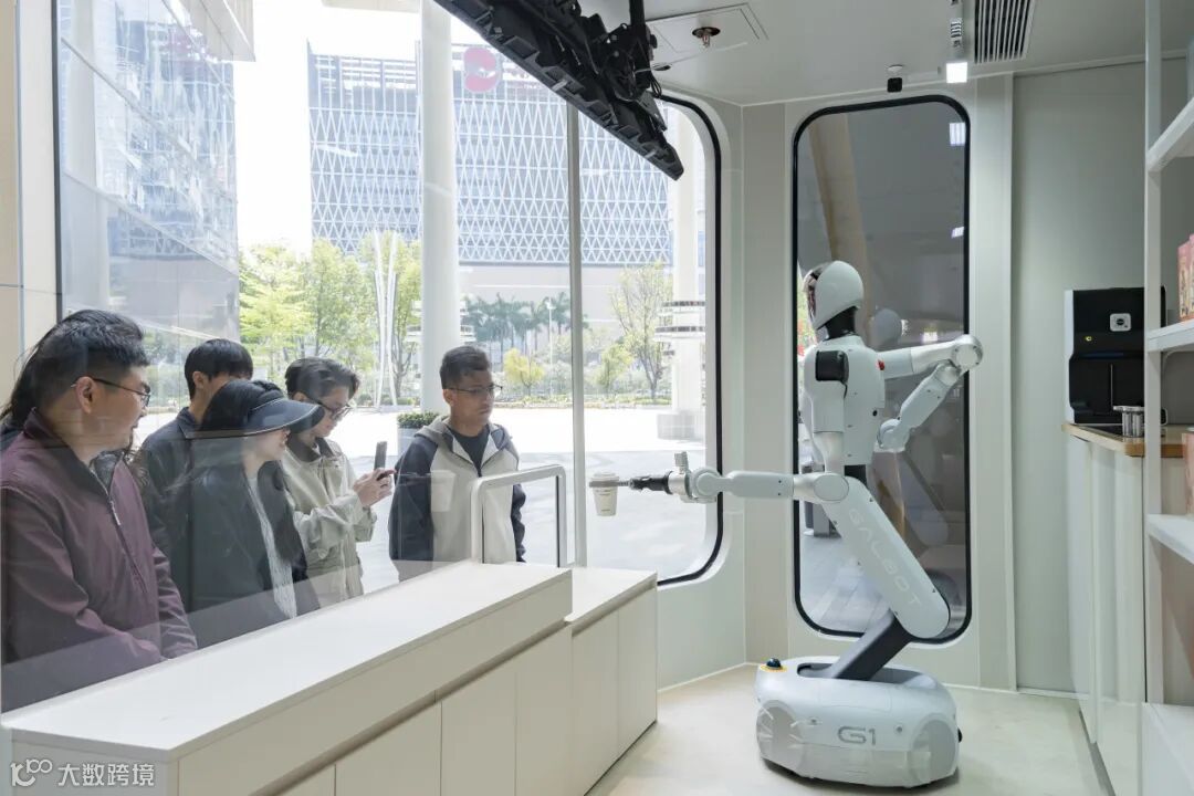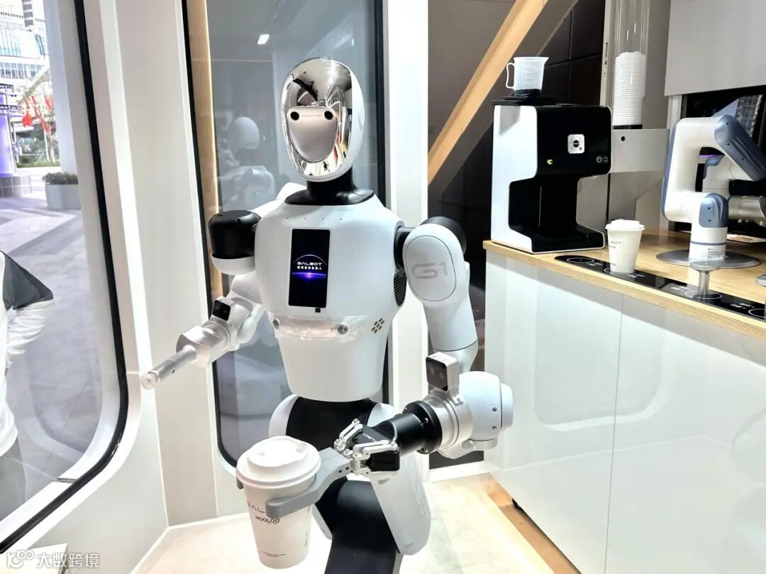 身高1.73米的它正在舱内忙碌,从迎宾、制作咖啡到抓取商品、完成交付,动作行云流水,吸引不少市民驻足拍照打卡。