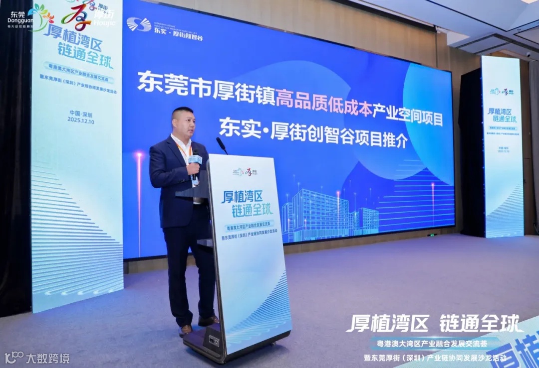12月10日,“厚植湾区,链通全球”——粤港澳大湾区产业融合发展交流荟暨东莞厚街(深圳)产业链协同发展沙龙活动在深圳市成功举办。东实·厚街创智谷作为厚街镇首个高品质低成本产业空间项目,受邀登台进行专场推介。