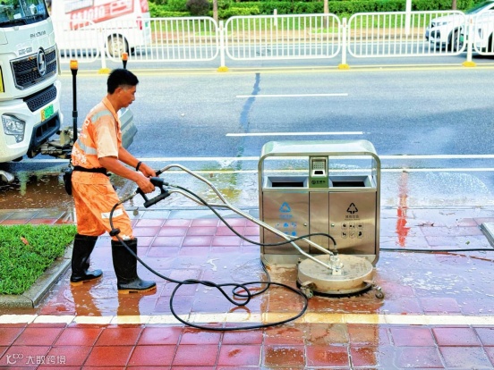 深度清洁:积极推进深度清洁,通过“高压冲洗+机械打磨”方式对人行道进行彻底洗刷,对垃圾桶、广告牌、公交站亭等城市家具实施一体化擦新维护,推动城市面貌焕然一新;
