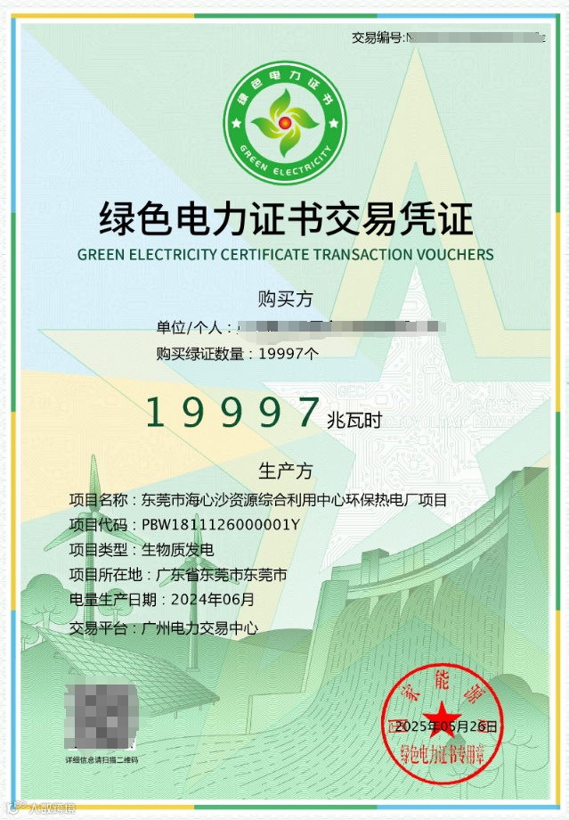 近日,东实环境下属东莞市新东元环保投资有限公司成功完成首批绿证交易,成交数量19997个,对应清洁电力19997兆瓦时,标志着公司在环境权益市场化变现方面取得重要突破。