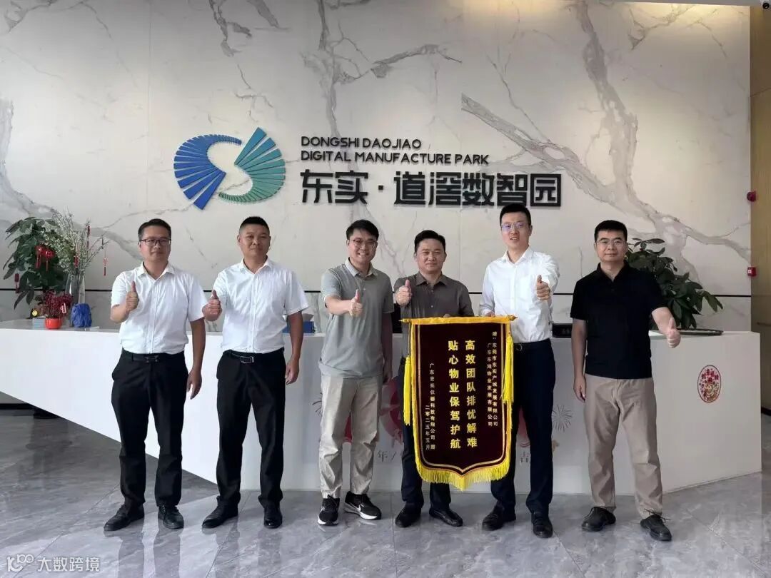 6月10日,东实·道滘数智园2栋业主广东宏拓仪器科技有限公司董事长钟从岗向园区政企服务中心赠予一面写有“高效团队排忧解难,贴心物业保驾护航”的锦旗,为园区服务“点赞”。