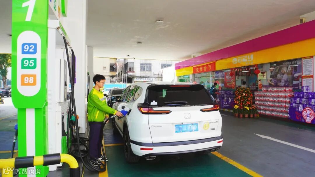 ▲新华加油站服务员正在为客户加油