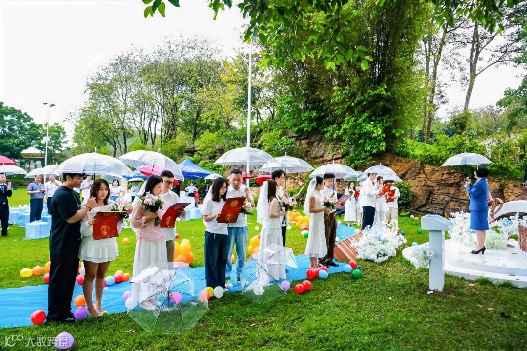 “我们自愿结为夫妻,从今天开始,共同肩负起婚姻的责任与义务……”新人在特邀颁证师的带领下庄严宣誓,交换戒指,并收到了由市民政局赠送的纪念礼品。当天,雨中仪式更显浪漫温暖,细雨轻拂透明雨伞,温润的草坪泛着微光,新人们相视而笑时,现场响起热烈的掌声和欢呼声。“没想到能在这么美的地方举行颁证仪式,感觉特别有意义。”新人代表李女士激动地说。