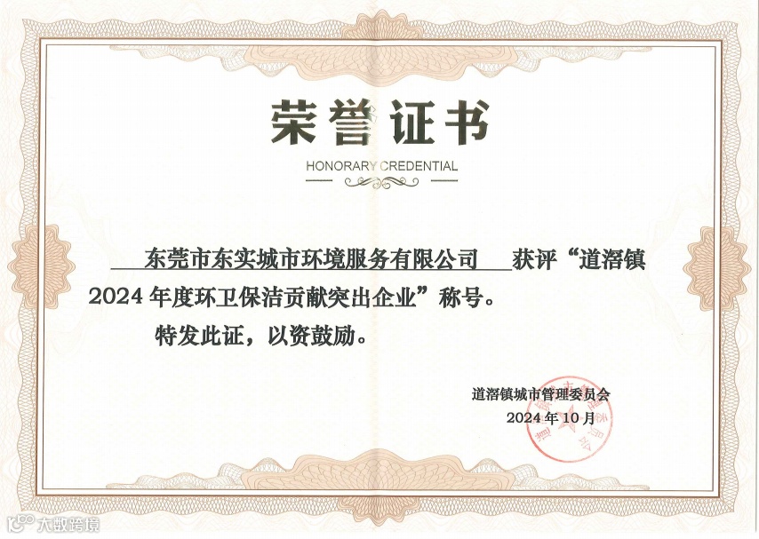 近日,在东莞市各镇街(园区)城管分局发布的表彰通报中,东实城服光荣上榜!其中,东实城服获得“道滘镇2024年度环卫保洁贡献突出企业”、“寮步镇2024年度环卫工作先进服务单位”称号,刘景松、陈小娥、唐永林等80名员工获得“环卫工作先进个人”称号。