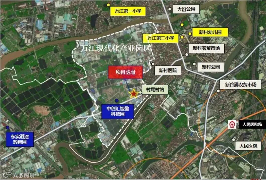 该项目位于万江新村现代化产业园位置最好、环境最优的地段,住宅小区一线临江、交通便利、配套完善。项目地块西、南、北面均有道路环绕,西至新村大道、南至内环东路、北至河涌、东至规划路,距万江街道办事处直线距离约5.5公里,地处万江街道与道滘镇的交界处,处于环城西路及沈海高速之间,通过环城路可快速直达市区,对外交通便利。项目地块2公里范围内有新村农贸市场、新谷涌农贸市场等商业配套,可满足日常生活需求;周边有万江第一小学、万江第三小学、万江第三中学、新村幼儿园,各阶段教育需求得到满足;周边水系发达,沿河景光优美,还有新村公园、大汾公园等休闲资源。