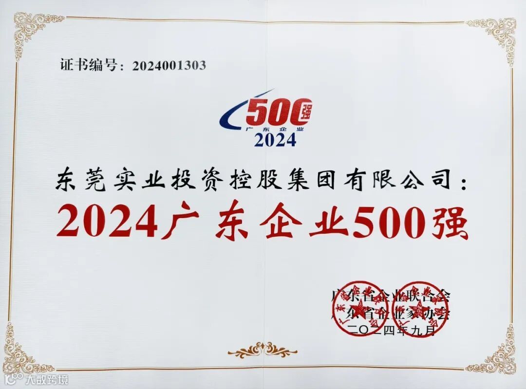 东实集团荣获“2024广东企业500强”证书。