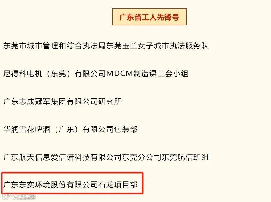 ▲石龙项目部获评“广东省工人先锋号”