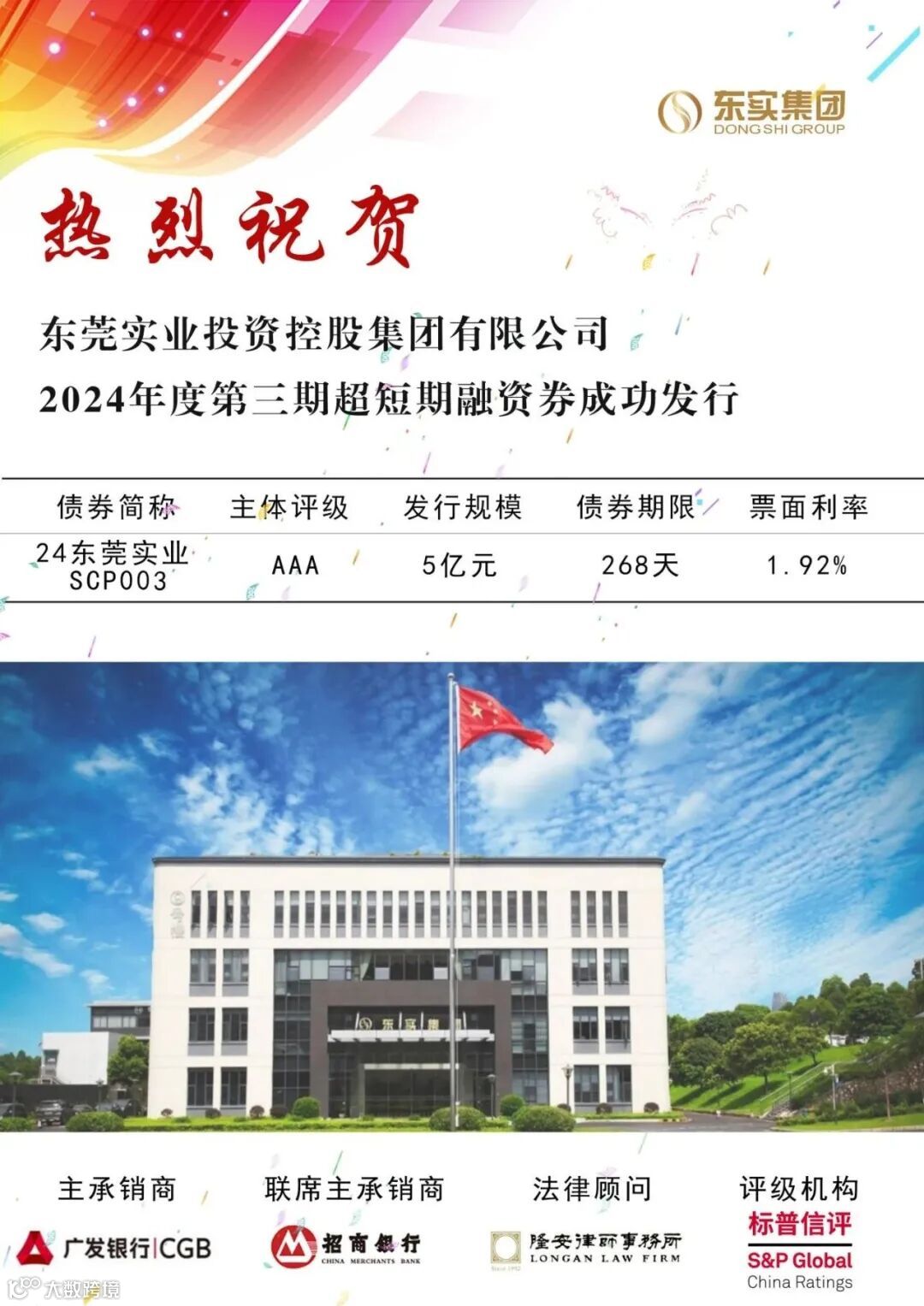 ►利率首闯 “1” 时代!东实集团成功发行5亿元超短期融资券!