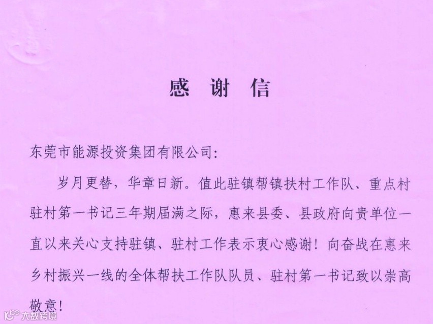 奋战“百千万工程” |东莞能源集团收到惠来县感谢信