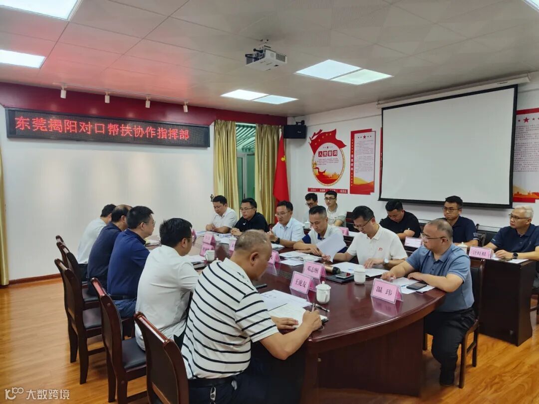 2024年是“百千万工程”加力提速、全面突破的关键之年,按照省委、市委部署要求,东莞在对口帮扶协作中也提出了任务要求。为进一步加强对驻镇帮镇扶村工作队和对口帮扶指挥部成员的关心关爱,切实把开展结对帮扶作为“深调研”的重要举措,推动“百千万工程”有效推进,2024年7月16日,集团党委副书记、工联会主席陈仲伟、党委委员、副总裁刘旸发、总裁助理邹书剑一行前往揭阳高新技术开发区管委会开展调研,揭阳市政府党组成员、副秘书长、莞揭对口帮扶协作指挥部(以下简称“莞揭指挥部”)指挥长叶冠强、广东莞揭实业投资发展有限公司(以下简称“莞揭实业”)等陪同并深入交流座谈。