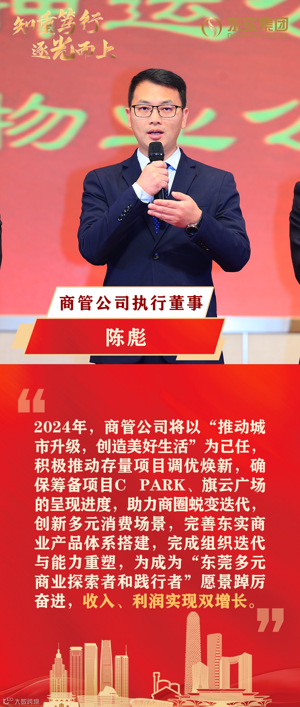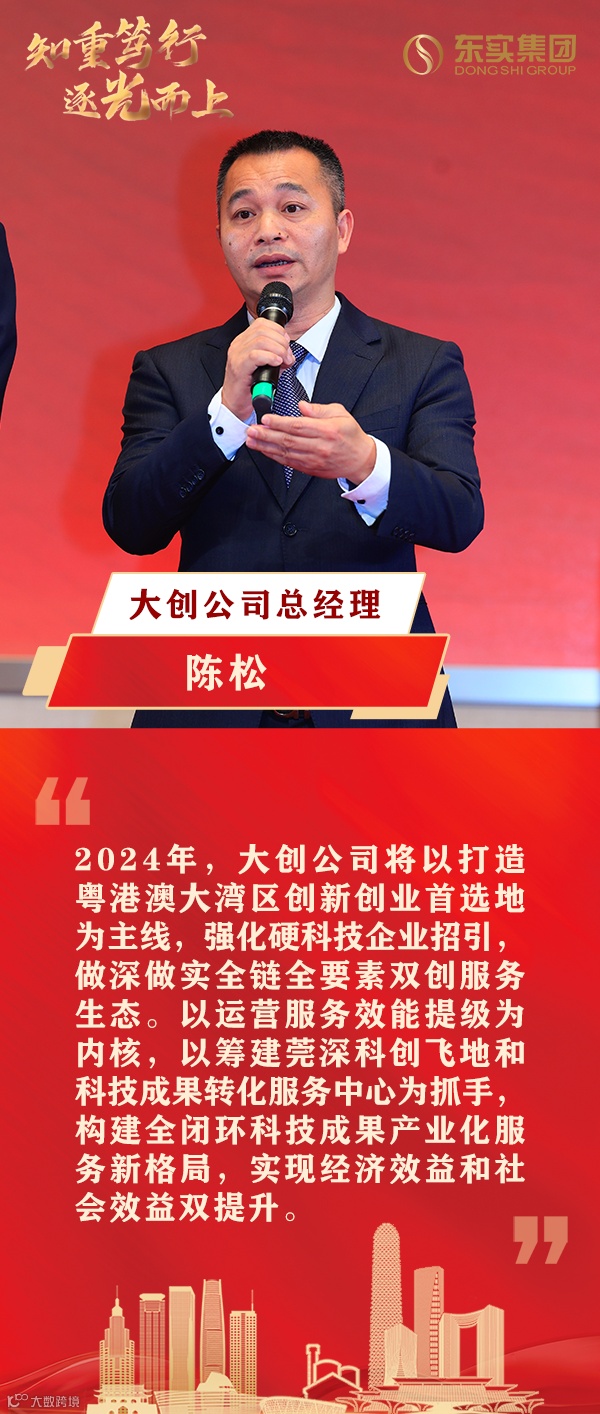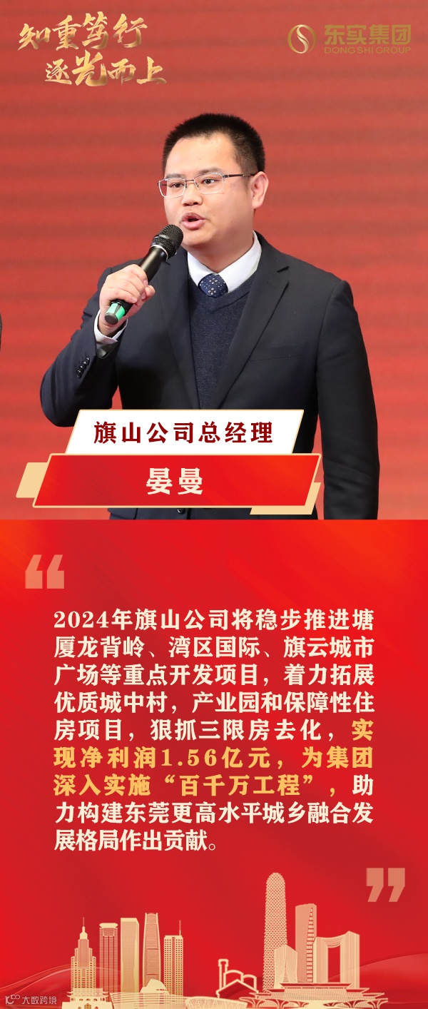 会上,集团各下属公司代表依次表态发言,在新的一年里将接续奋斗,逐光而上,努力实现东实的发展梦,开创企业发展新格局,为东莞城市与产业高质量发展积极作出应有贡献。