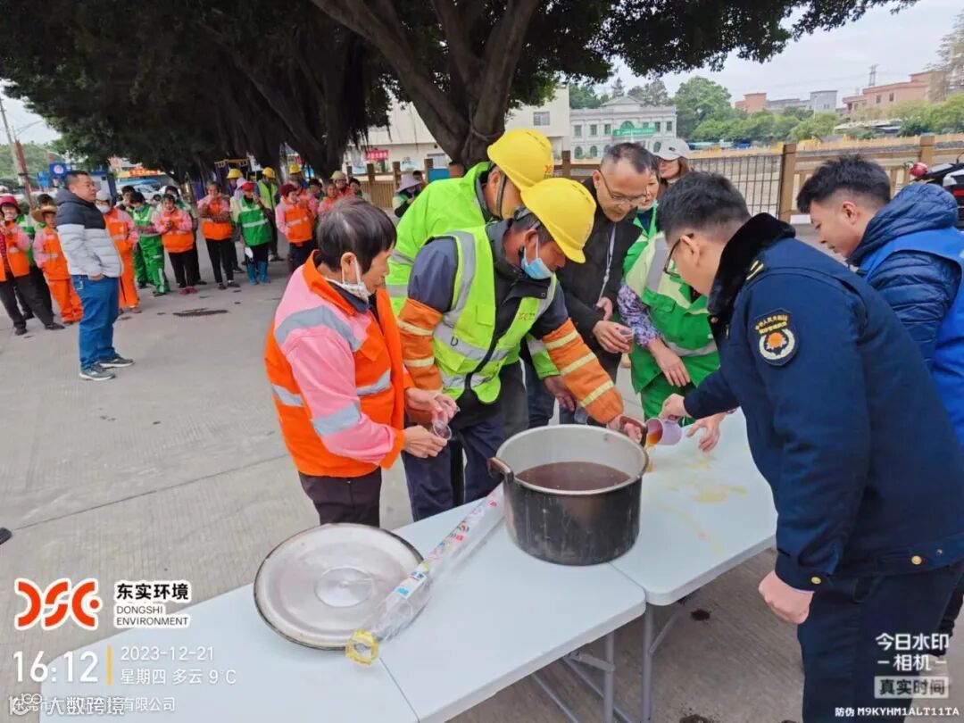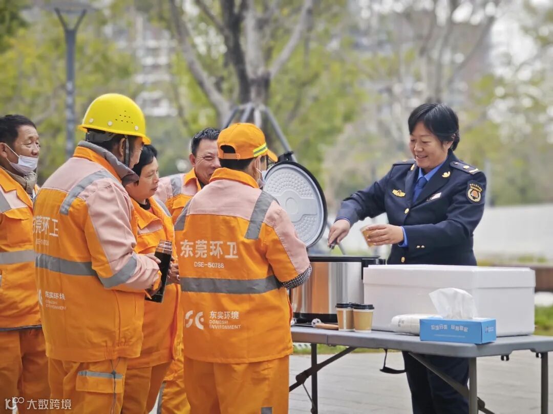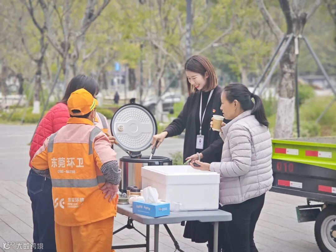 爱心姜茶不仅温暖了游客市民,也温暖了奋战在一线的环卫工人。本周,东实城服公司联合相关城管部门分别在松山湖、石龙、南城、中堂项目为环卫工人送上热腾腾的姜茶。
