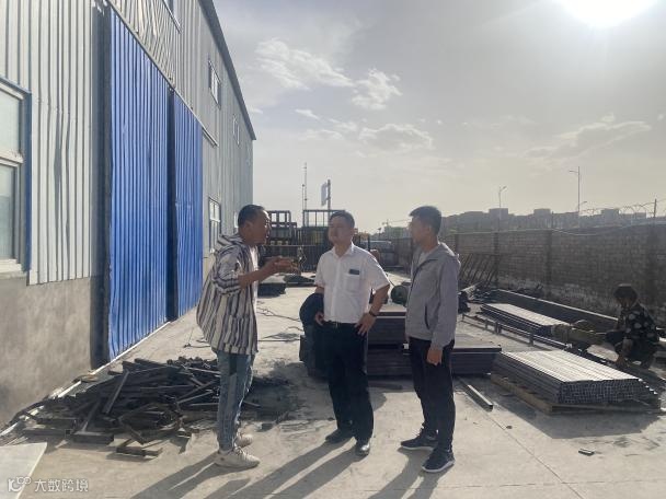 蔡颢(右二)与企业进行交流,了解企业具体经营中所遇到的困难。