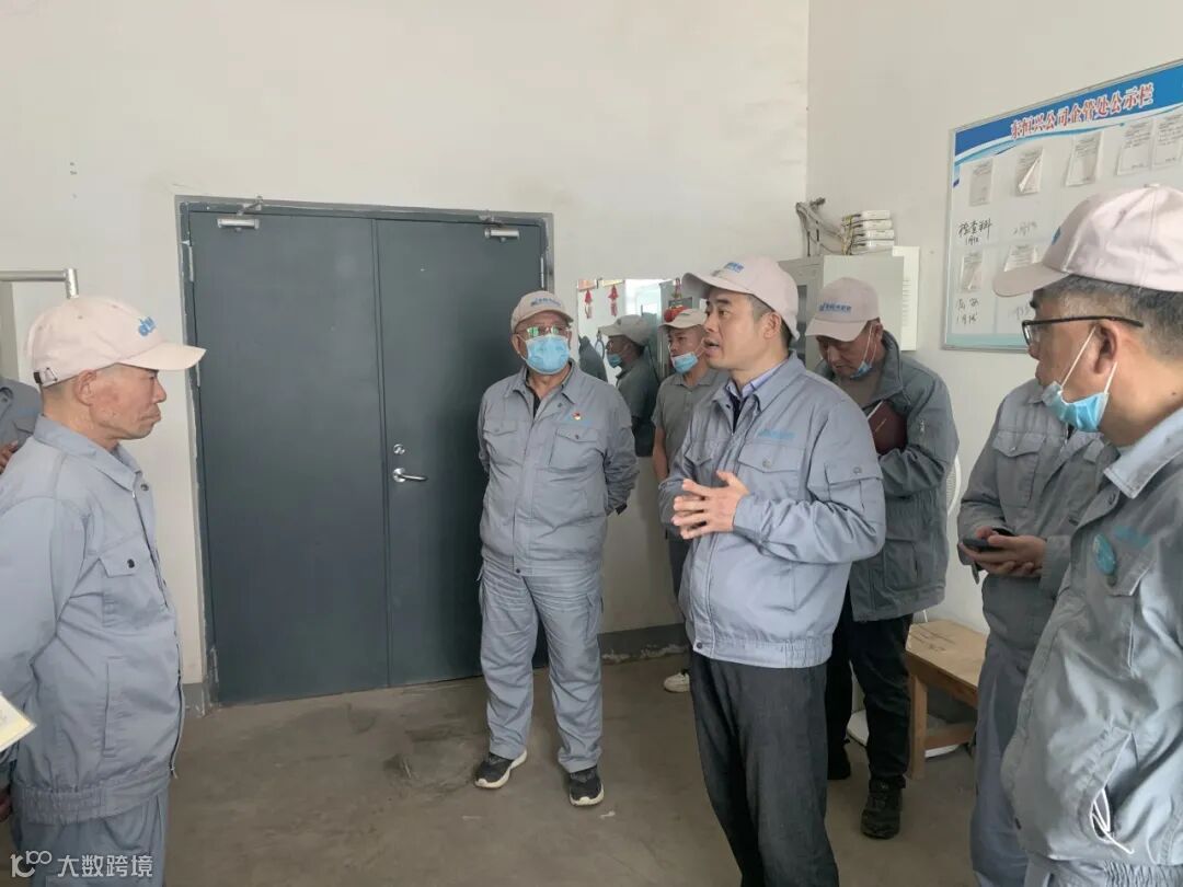 ▲凌力(右一)在车间检查安全生产工作
