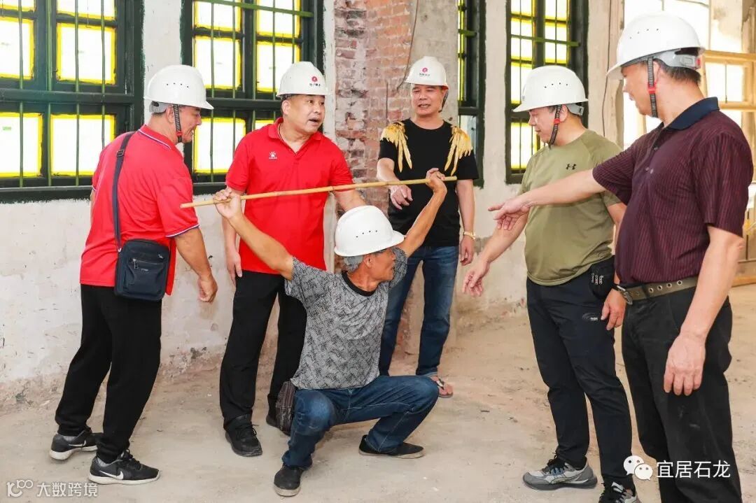 近日,曾在旧体校训练过的举重前辈们在东莞市举重协会的组织下,集体回到石龙,在中国举重博物馆建设现场感受旧体校“修旧如旧”的成果,共同追忆当年在这里训练的美好时光。当他们回到这个熟悉的地方时,看见墙面上留有一些过去的“奋斗痕迹”,昔日的回忆瞬间涌上心头,感慨万千。“当时这里没有这道墙,有5个举重台。”“当年没有机器,所有的地板、墙砖都是靠人手打磨而成。”“门窗以前都有刷油漆,用东江杉木,由木工开榫制成,在以前来说已经很高级了。”参观过程中,大家你一言我一语,聊起旧时情景。
