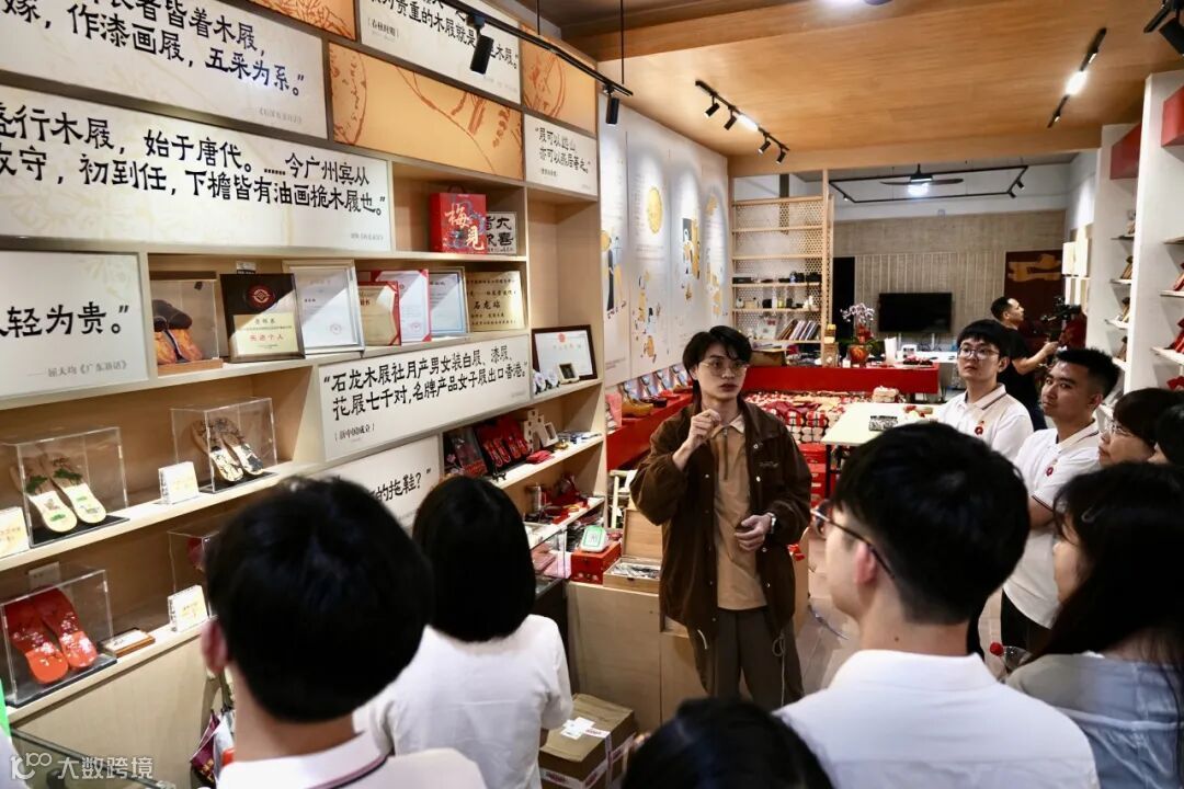 此外,莞建公司一行还走进石龙“非遗一条街”,实地参观新昌鼓、红漆描花木屐制作工艺,在制作工艺步骤展示中感知工匠精神。