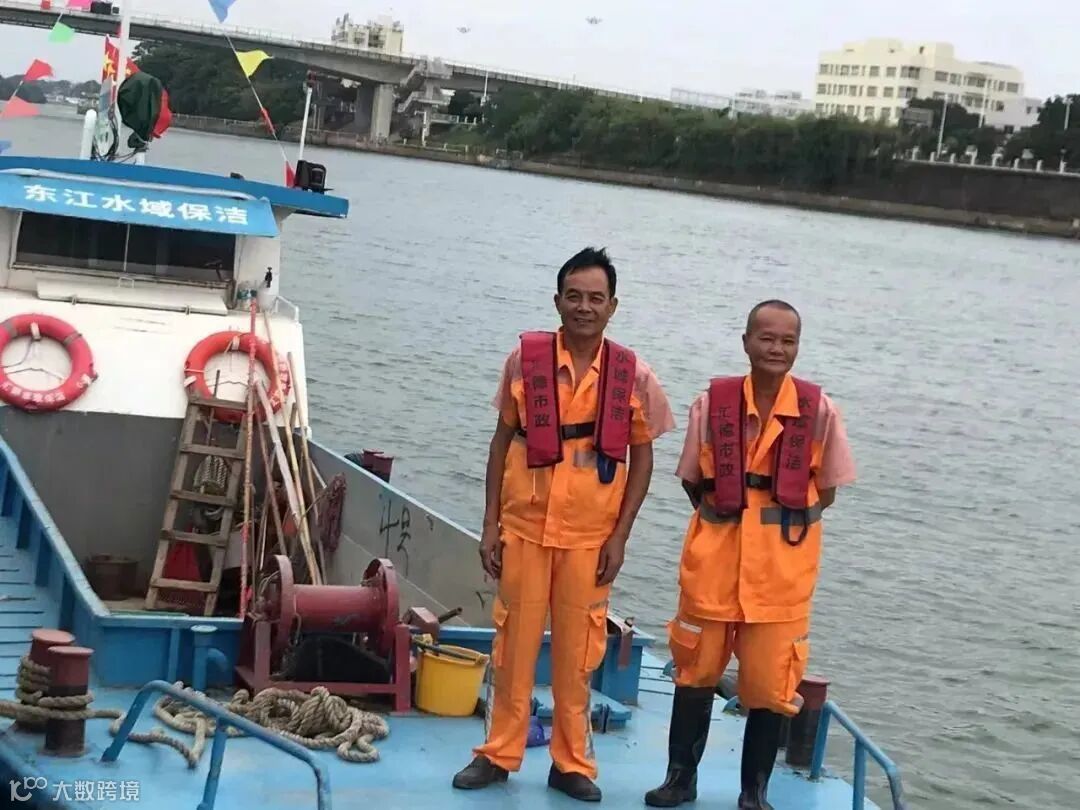东实城服公司(左)保洁员苏细洪、(右)船长李达星。叶毅鹏 摄