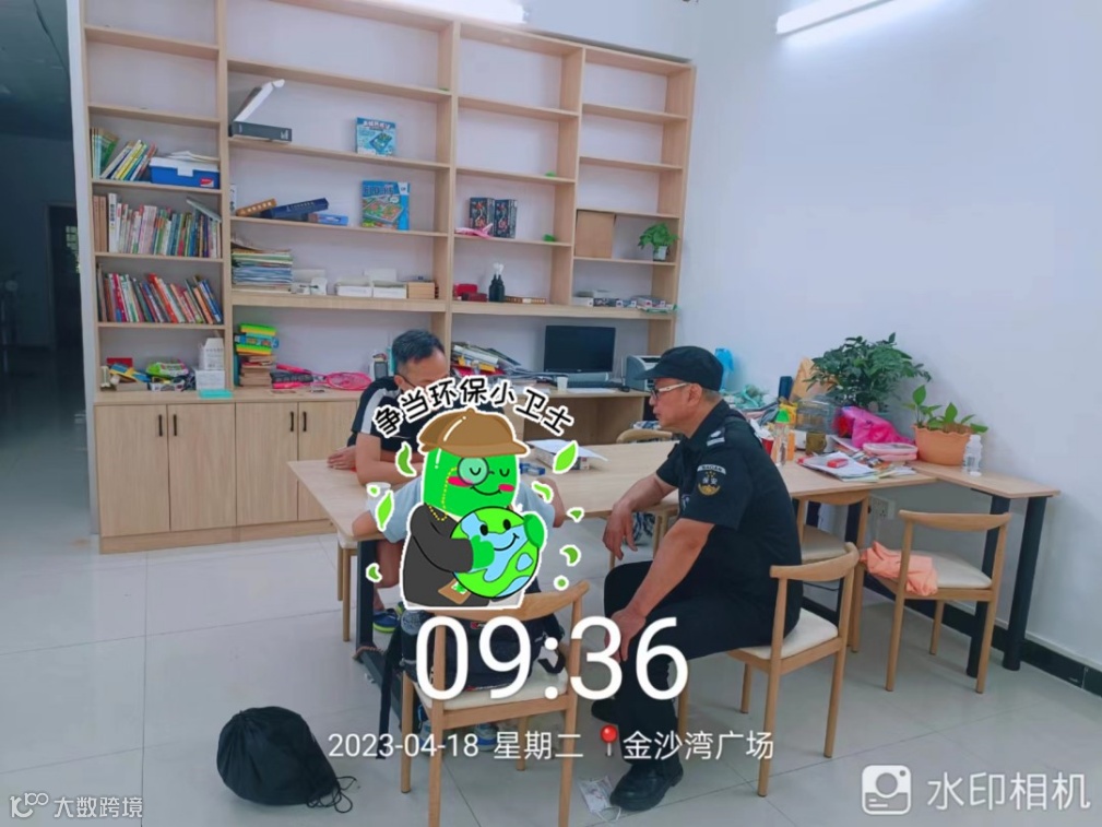 2023年4月18日,东实城服公司安保人员龙正祥正在石龙镇金沙湾公园进行日常巡逻,发现一名小男孩背着大书包独自一人在江边徘徊哭泣。