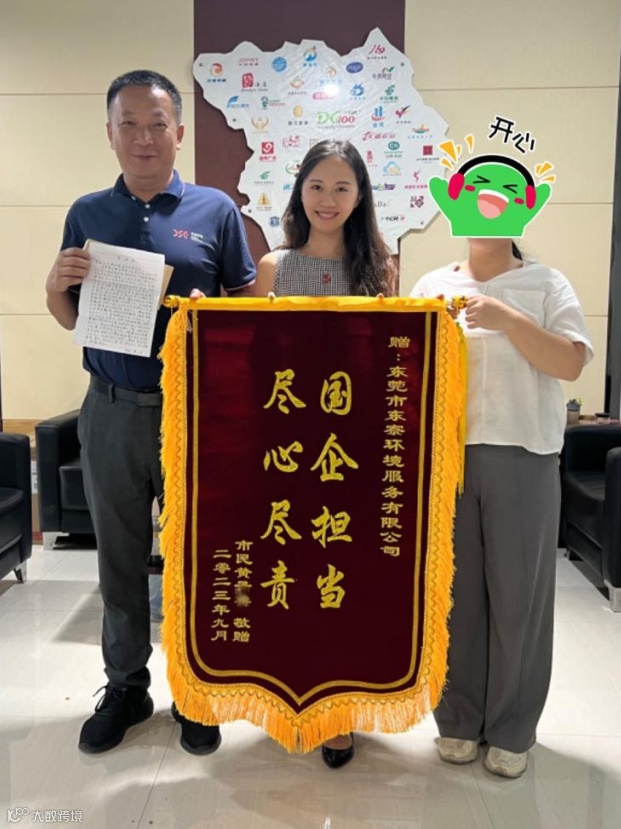 据悉,黄女士的10万元被人捡到了,最终由公安部门通过监控寻回,黄女士对我司的协助表示十分感激,于是带着锦旗和手写信来到东实城服公司寮步项目部,将其送给所有工作人员。