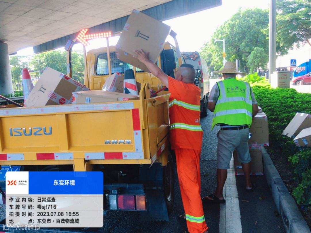 2023年7月8日16时,东实城服公司员工宁权和其他两位同事开着扫地车在高埗S120-K34公里处作业时,发现路边散落了一堆纸箱,大大小小加起来一共有11个,透过箱子破漏的一角,可以清晰辨别出是女鞋。由于不见失主返回寻找失物,第二天上午10点,在征求公司意见后,梁君锴和宁权一行人又将货物拉到了高埗派出所,委托民警帮忙寻找失主。目前,已将捡到的11箱鞋子顺利归还失主。