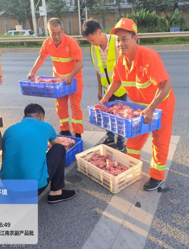 2023年11月1日,国省县道项目司机黎若泉、跟车袁敬棠、霍尧安、吕海潮在S120北王路进行路面巡查时突然在路中央发现有遗落的肉类物品,十分钟后失主返回,他们成功将物品交还给失主;