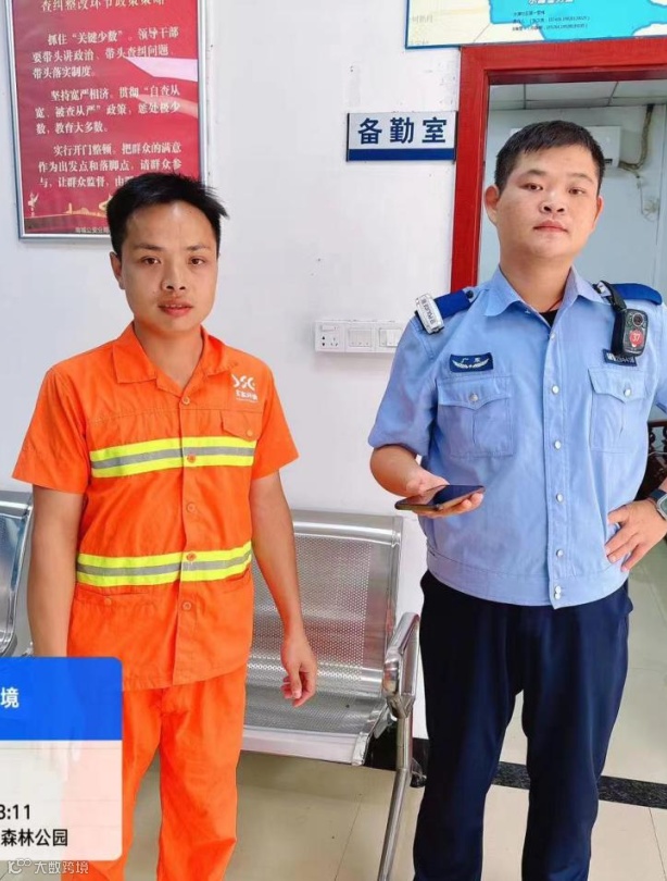2023年10月15日,国省县道项目叶自颖在X235水濂山景观路进行路面巡查,突然在路边发现一部智能手机,并送到警务室,最终失主寻回该手机;