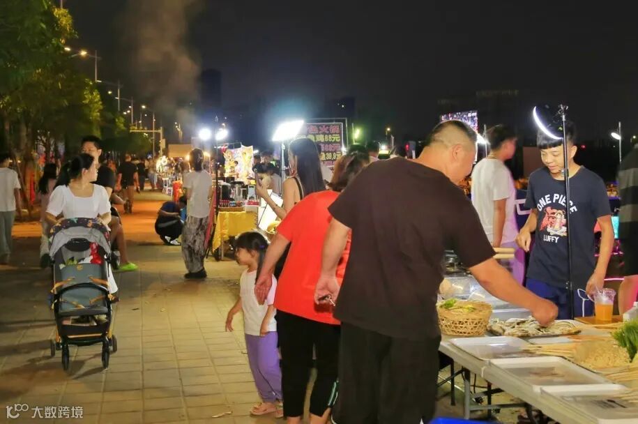 夜市摊位琳琅满目,吸引年轻人拍照打卡。