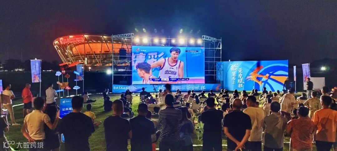 篮球嘉年华活动火热启动,实时转播的篮球赛吸引大批观众驻足。
