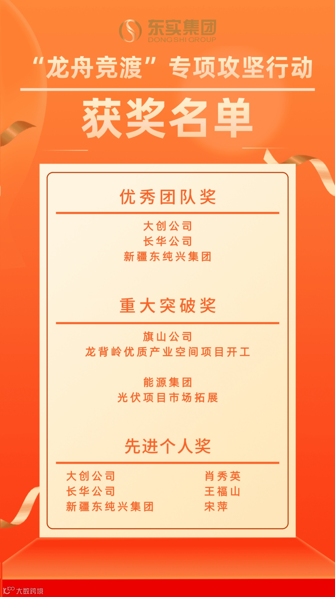 日前,“龙舟竞渡”专项攻坚行动圆满收官,考评结果正式出炉!东实集团这些下属公司及个人以亮眼成绩,分别斩获“优秀团队奖”、“重大突破奖”和“先进个人奖”!