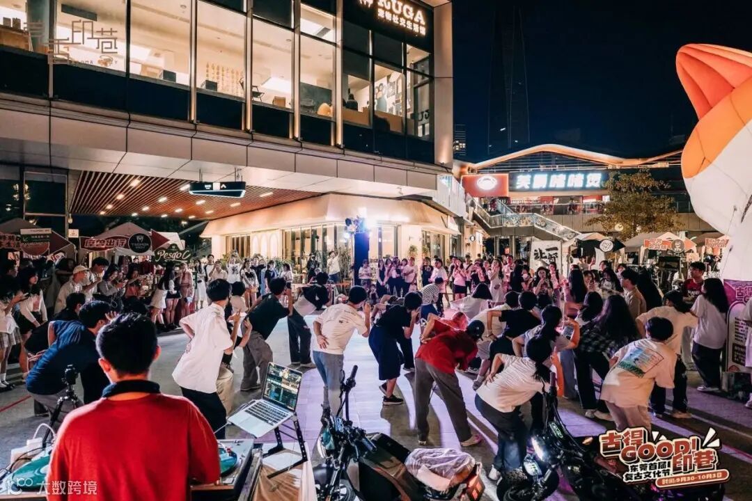 莞香印巷首届复古文化节现场,年轻人演绎随机舞蹈,活力四射。