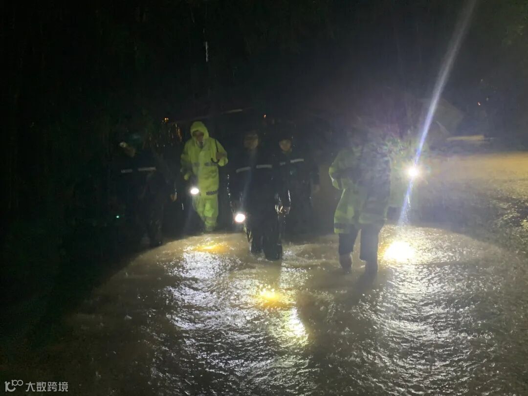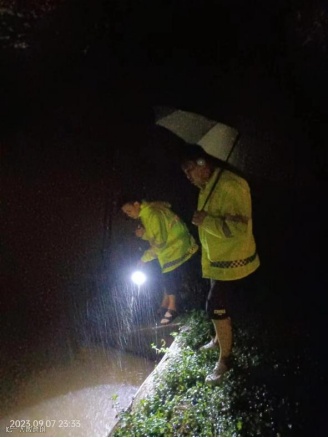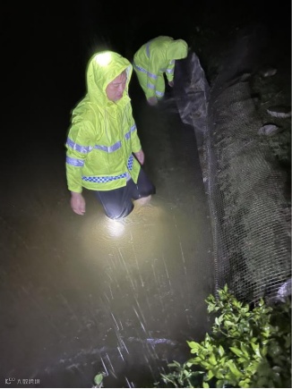 ▲深夜检查易涝点位防汛情况
