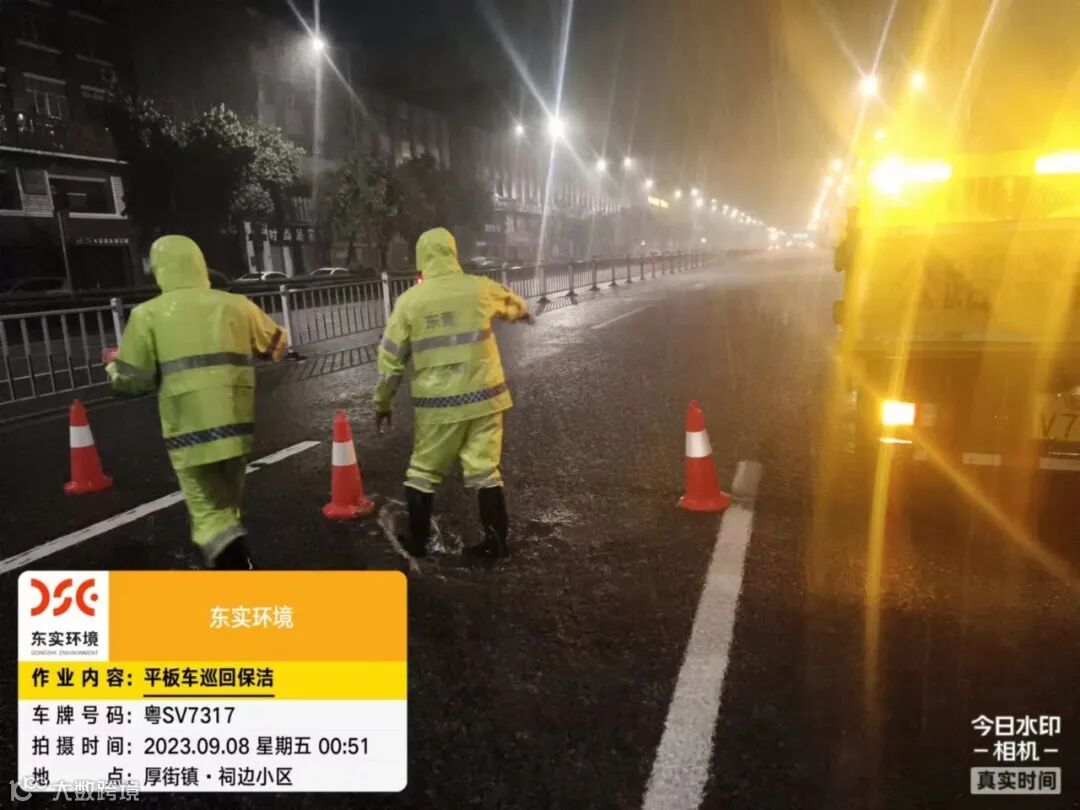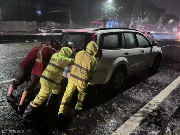 9月8日凌晨2时30分左右,城服公司环卫工人在新锡边公路应急处置过程中,发现有群众车辆被困于国道G107东城水浸路段不能前行,于是主动帮助车主推车,救援群众受困车辆,他们用实际行动诠释了东实集团的国企担当。