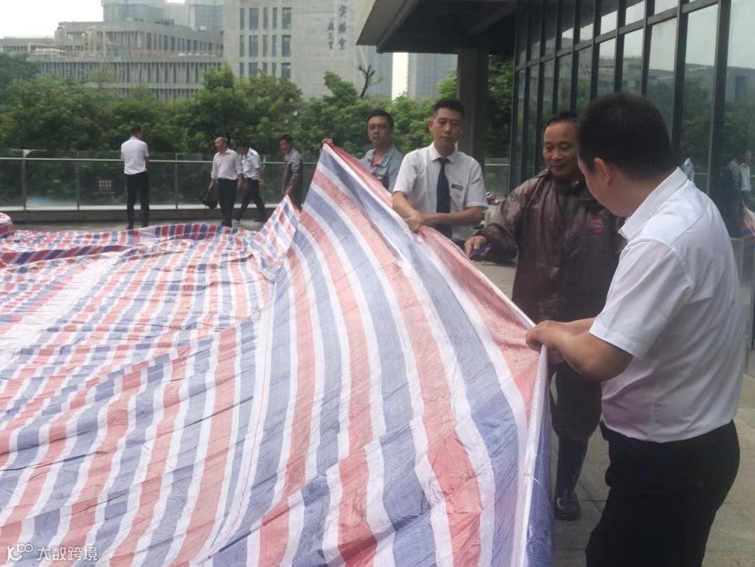 9月8日傍晚时分,东鸿公司物业工作人员巡查发现松山湖国际创新创业A1栋与A2栋平台连接处出现渗漏情况,由于平台下面是某重点实验室,为保障实验室设备设施安全,东鸿公司迅速向大创公司申请紧急采购彩条布,历时4个小时盖住渗漏点,用沙袋压紧压实,并安排人员不间断巡逻。
