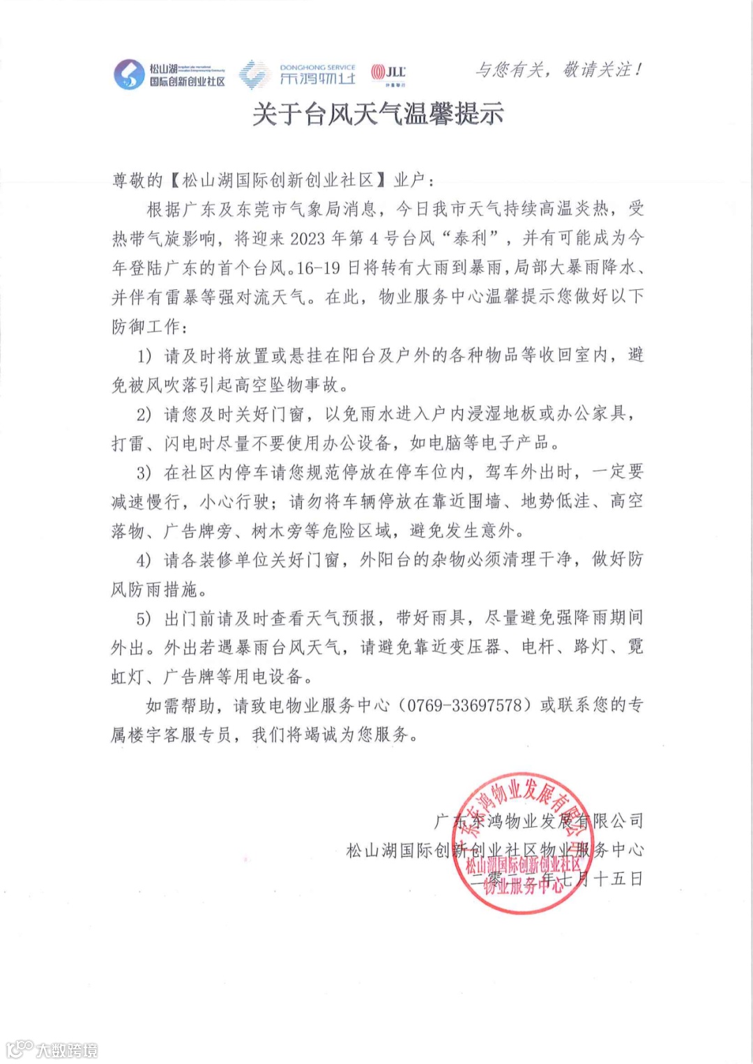 集团安委办指出,各下属公司、项目要实时了解最新台风讯息,在收到有关部门发布的台风、暴雨警报后,及时发布台风天气温馨提示。