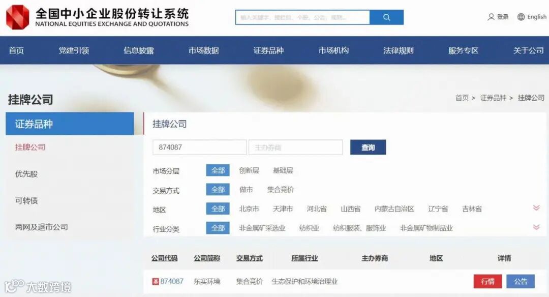 东实集团全资子公司——广东东实环境股份有限公司(以下简称“东实环境”)于2022年11月正式启动全国中小企业股份转让系统(以下简称“新三板”)挂牌工作。2023年6月15日,东实环境在新三板成功挂牌,股票简称为“东实环境”,股票代码为“874087”。