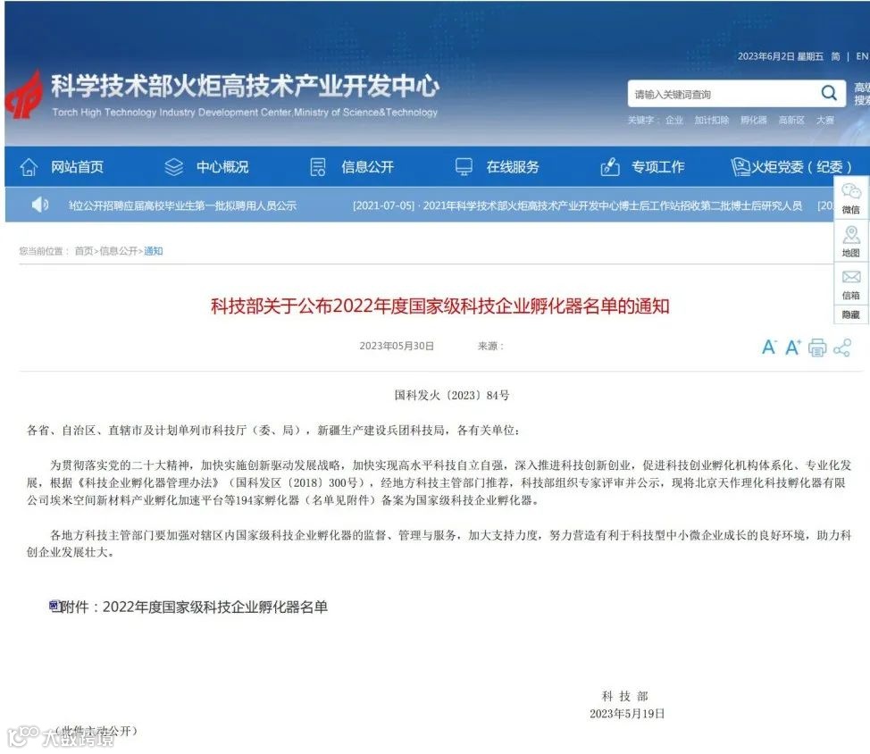 近日,根据科学技术部火炬中心发布《科技部关于公布2022年度国家级科技企业孵化器的通知》(国科发火〔2023〕84号),东韶公司下属子公司广东东韶华科城产业孵化有限公司建设运营的科技企业孵化器——华科城·莞韶双创(装备)中心(以下简称“双创中心”)成功获批国家级科技企业孵化器。此次成功获批,是对东韶公司在推动初创科技型企业孵化和培育上所所作努力的肯定。