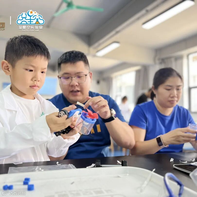 在实验课程《空气动力车》中,老师讲解了空气的组成成分及其特性,引导大家认识生活中反冲力现象,学习空气动力原理。