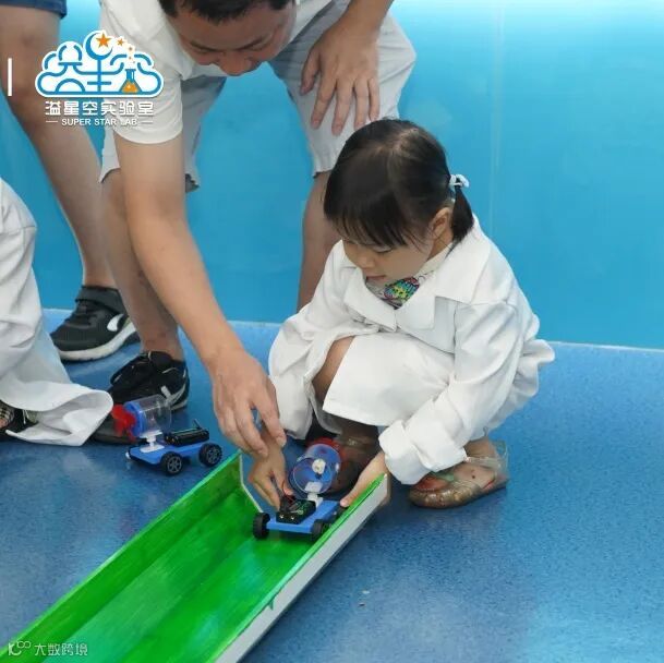 终于来到孩子们期待已久的实验环节,大家怀着一颗好奇心,亲自动手,开动脑筋,利用风车、气球等道具了解空气动力的作用,探究反冲力实验,并与家长共同尝试制作空气动力车。