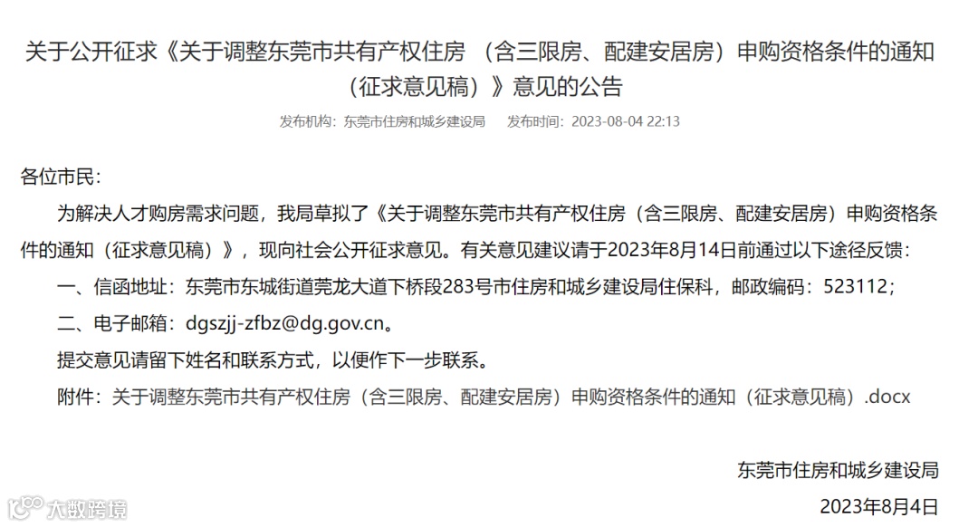 《关于调整东莞市共有产权住房