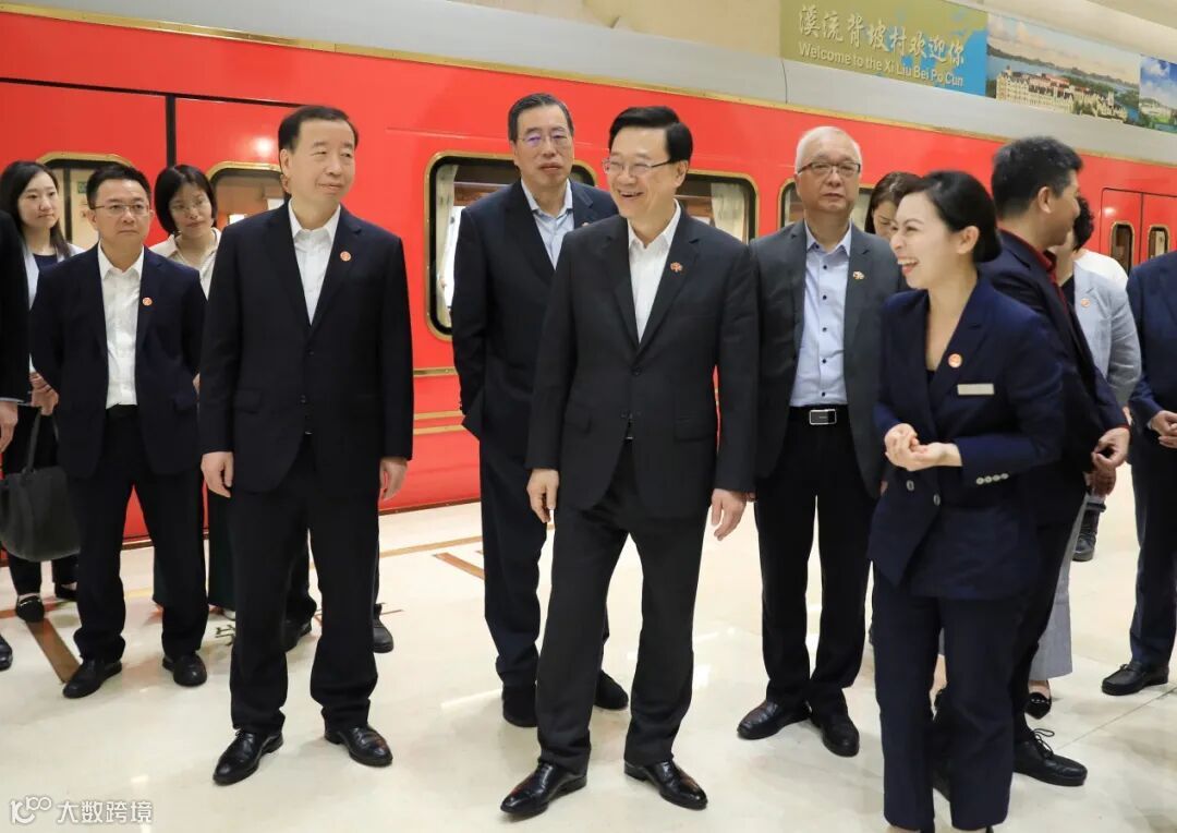 4月22日,香港特别行政区行政长官李家超、立法会主席梁君彦共同率领香港特区政府及立法会大湾区访问团到东莞进行访问,东莞市委书记肖亚非,市委副书记、市长吕成蹊对访问团热情欢迎并进行交流。李家超表示,期望继续与大湾区内地城市有更多、更紧密和更创新的高水平合作,推进粤港澳大湾区建设更上新台阶。