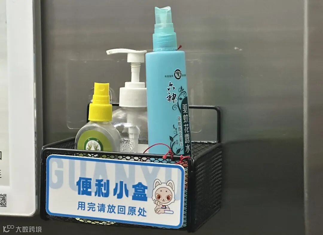图为莞寓电梯设置的便利小盒,配有防蚊喷雾等