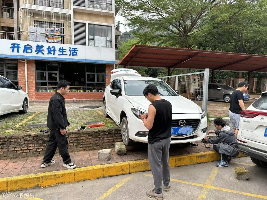 4月10日,住户驾驶车辆时误操作导致意外,同沙店全体工作人员协助抬车。住户表示,好似一家人齐心协力干“大事”的感觉。
