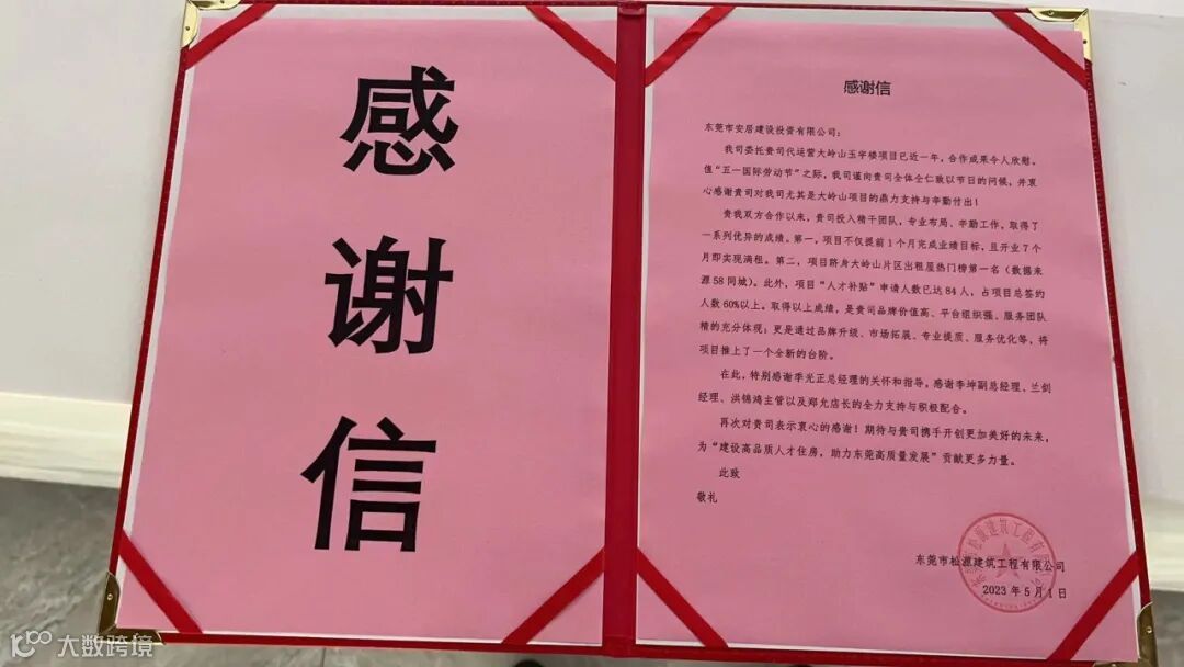 近日,代运营项目大岭山店业主方为安居公司送上感谢信,点赞安居公司的专业能力,感谢安居团队的辛勤付出: