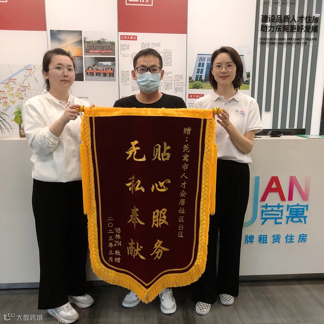 4月26日,莞寓·都会广场店住户刘先生送来锦旗,感谢门店工作人员在4月24日及时发送暴雨温馨提醒。由于住户当时并不在家,门店工作人员及时帮助住户收取晾晒在阳台的年货,避免了损失。住户表示,租房这么久,第一次感受到了不一样的服务。